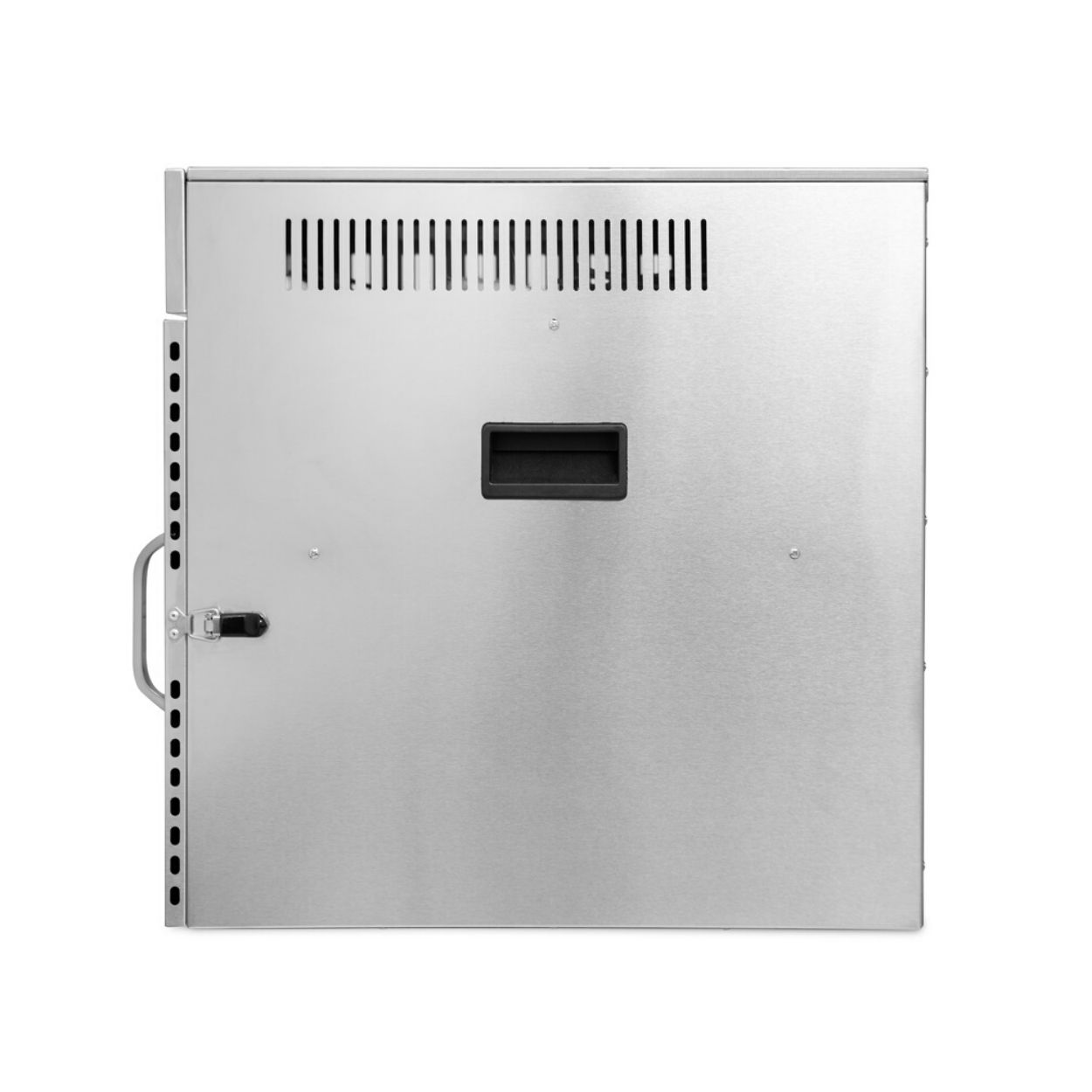 Veliki tihi ventilator postavljen straga stvara vodoravni zrak protok kroz svih 12 polica. To omogućava jednako sušenje hrane preko svih 12 polica.